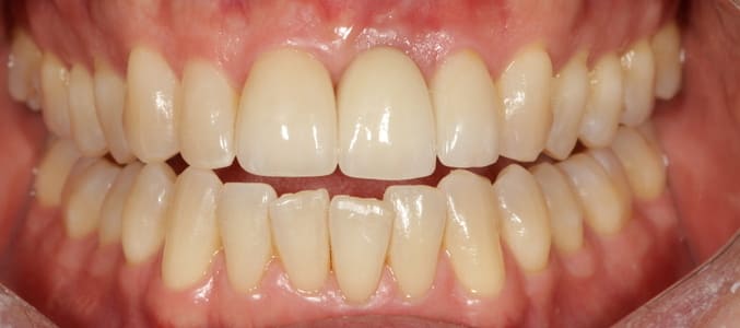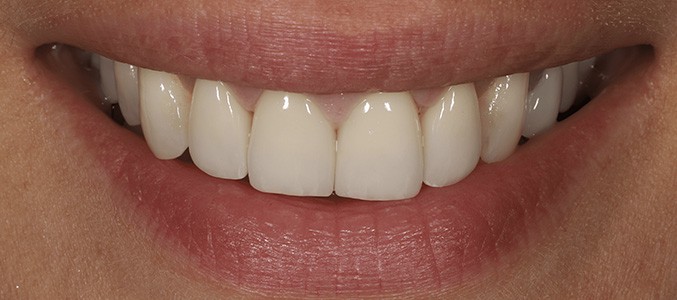 This patient says she feels like a teenager after getting her smile makeover on her upper front 6 teeth. They look light and natural and just the shape she wanted for beauty and function.
