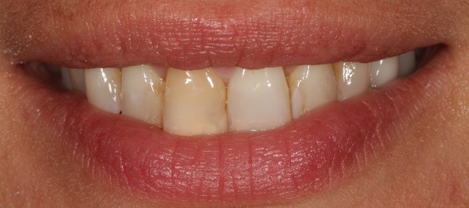 Also, it is commonly known among dentists that the hardest thing to do in dentistry is match a natural front upper tooth with a porcelain one. Many or most dental offices will require that both teeth must get crowns or veneers in order for them to match. At SLimDental however, we routinely do this procedure and make it look easy.