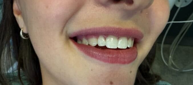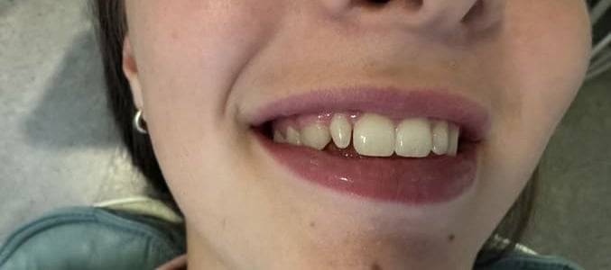 A 14 year old girl just finished straightening out her teeth with braces and came with her grandmother to help decide what to do about her peg-shaped lateral. This is an issue that some people have that affects their appearance. I decided to use resin bonding to transform that peg-lateral into a ‘normal’ one without having to do any drilling. Later when she is an adult she can do a crown or veneer to make the change more permanent.